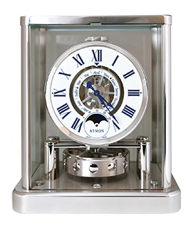 1970年由瑞士積家製造。空氣鐘以溫度的變化,作為所需動力的來源,只要室溫上升或下降攝氏一度,機(jī)芯內(nèi)發(fā)條盒的彈簧就能蓄積足以自主運(yùn)行四十八小時的動力。